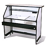 Rolls on 6 industrial strength casters and features 2 ice bins, 2 cutting boards, a speed well and a folding shelf below.